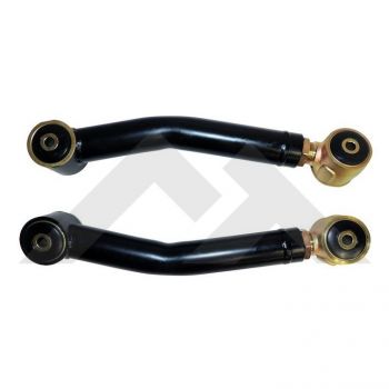 - Heavy Duty Adjustable Lower Control Arm Set w/ Rubber Bushings; Collapsed Length (Center to Center): 16″; Extended Length (Center to Center): 18″; 2″ DOM Tubing; 1.25″-12 Threads; Matte Black Powder Coat Finish; Zinc Coated Forged End; Bent For Increased Clearance to Axle Brackets.