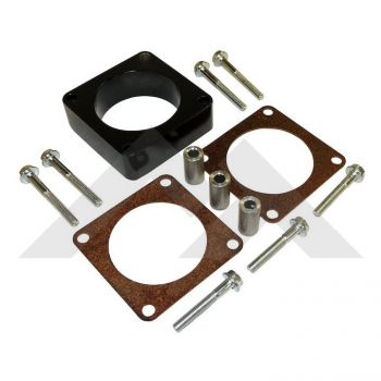 - Black Anodized Throttle Body Spacer Kit; 1″ Thick to Provide a Smoother, Faster and More Dense Air Charge Resulting in HP, TQ and MPG Increases. Kit Includes: Aluminum Spacer, Gasket, Bolts and Washers.