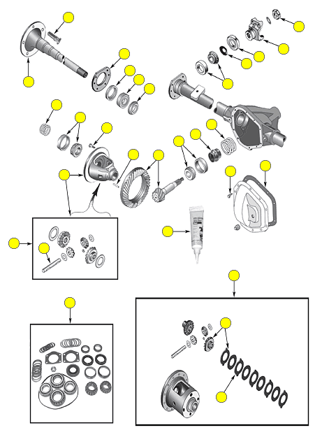 - Kit Includes Pinion Bearings, Differential Bearings, Axle Bearings, Pinion Seal, Axle Seals and Pinion Nut.